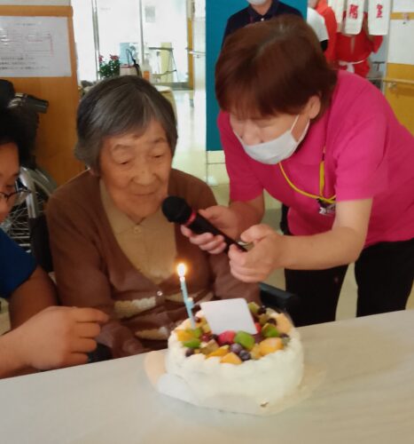 2名様の誕生会でしたが 当日はO様のみ出席での誕生会となり 皆様の熱い視線が注がれていました(^_-)