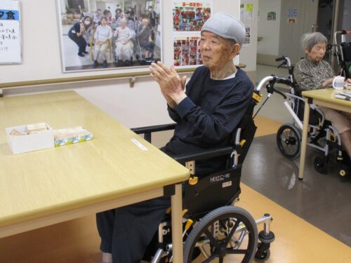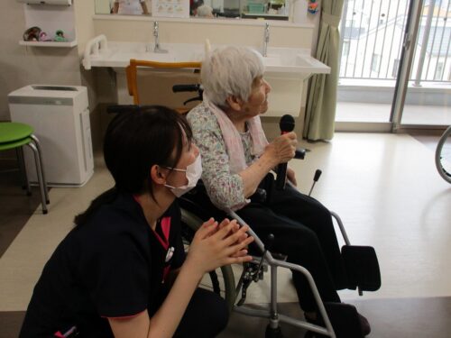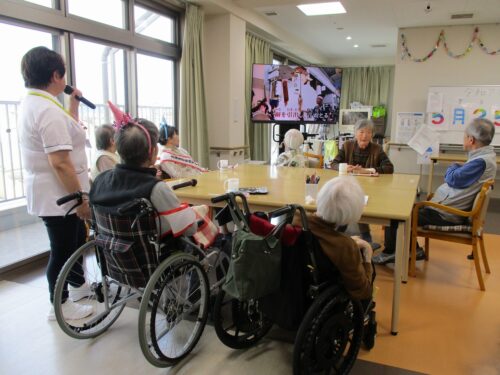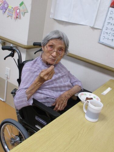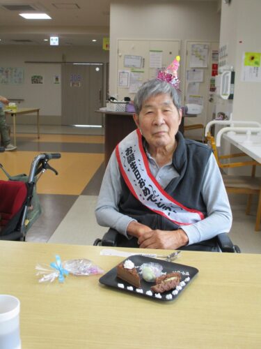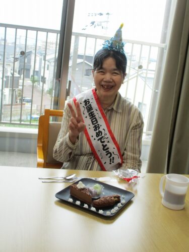 入居者様と一緒にハッピーバースデーの歌でお祝いしました。