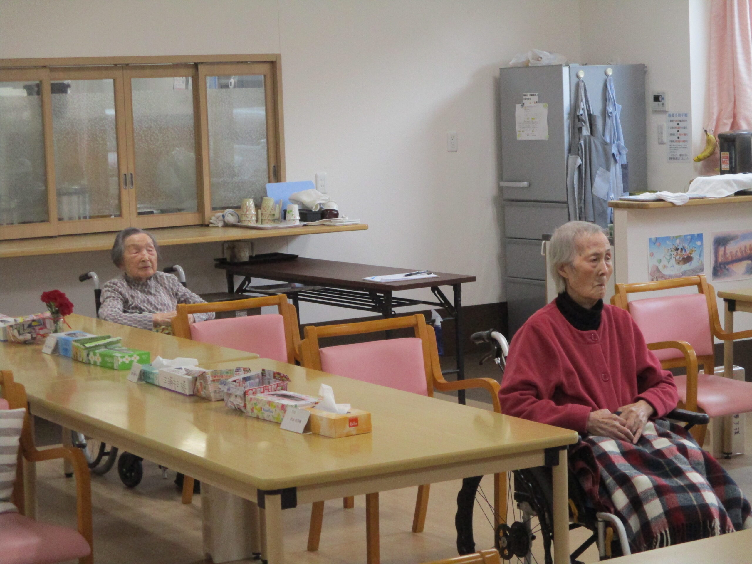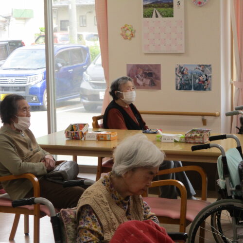 皆さん、テレビの方を向いて座っているかと思いますけれど、今日は細谷病院による訪問診療の日です。皆さん緊張して先生に何て言えばいいか考えていますね。