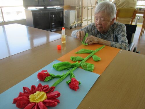 さわやか室蘭館 3F作成中♪ 2024-07-23 2024-07-20 皆様こんにちは! 本日は、3Fの入居者様の作品制作の様子を ご紹介します。 花瓶のお花を写生されておりました。 素敵な作品ができあがりました~♪ 大きなお花を作成しておりました~(^^♪ とても集中されておりました☺ あっという間のできあがりです!