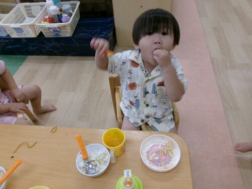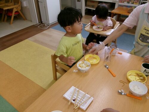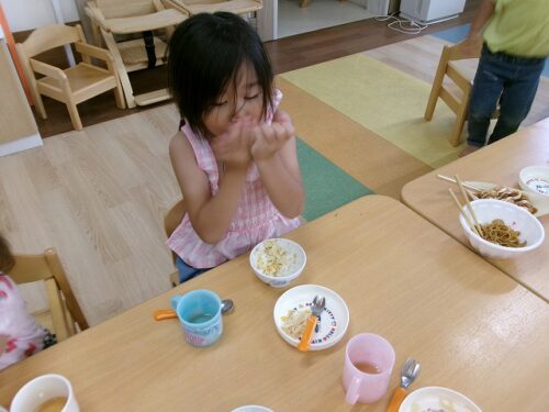 保育室にいてもにぎやかな声やいい匂いがながれてきてお祭りが始まる前からワクワクでした