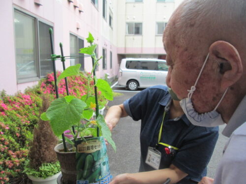 きゅうりにお花が咲きミニミニミニきゅうりができています🥒☺
