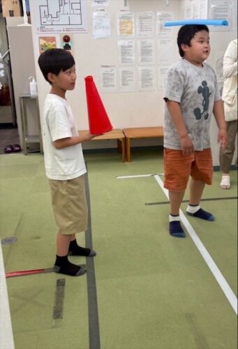 手や頭に乗せて…落ちないようにできるかな…⁉️