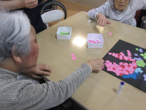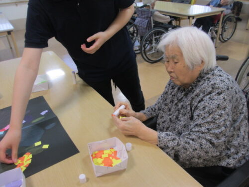 色分けした紙に色画用紙を貼っていただきました🙌