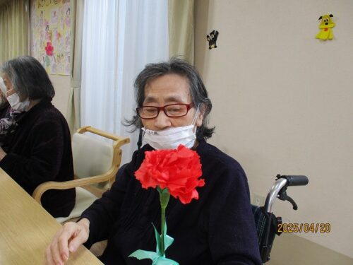 こちらの花紙は以前ご入居者様が龍を作られたものです