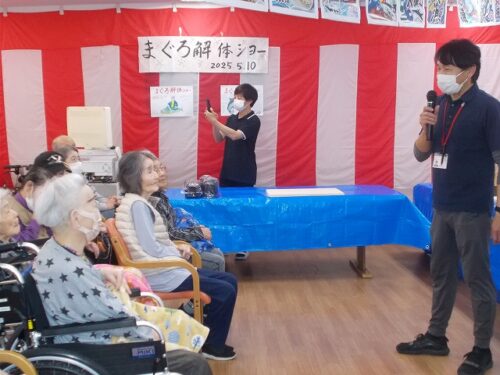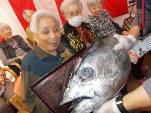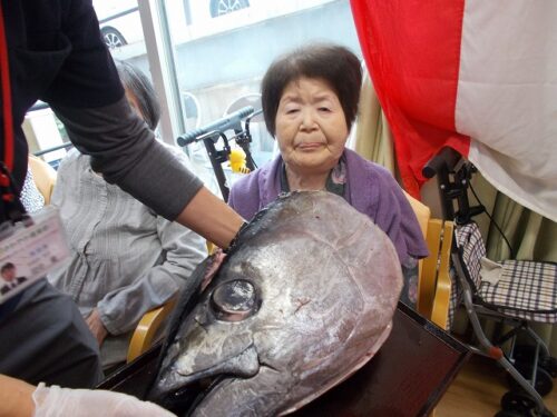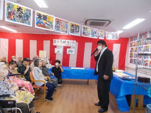 先日 開所15周年を迎えるにあたり、マグロ解体ショーを