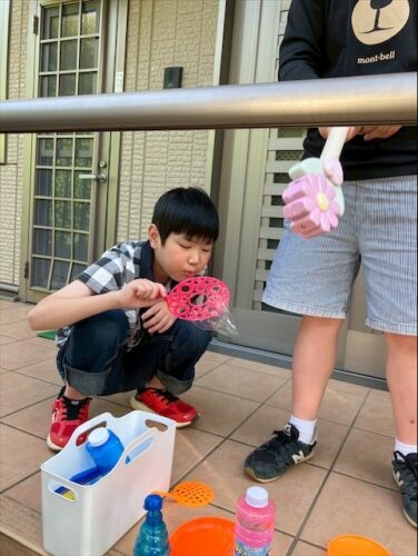 梅雨入りも近そうな今日この頃ですが、晴れた日にシャボン玉🫧をしました!