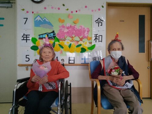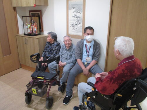 フロアの玄関でご入居者様と過ごされているところパシャリ!