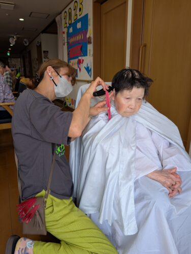 さわやかグループホームあゆみ ☆さっぱり☆ 2025-06-01 2025-06-01 月の初めの恒例行事 訪問美容です。 美容院が来ると 一ヶ月が早いなあと スタッフもびっくり 皆さんもすっきりして気持ち良いですね^^ 毎日の入浴や清拭 掃除や洗濯 その積み重ねをしながら日々気持ち良く 安心安全・快適に生活して頂いています。