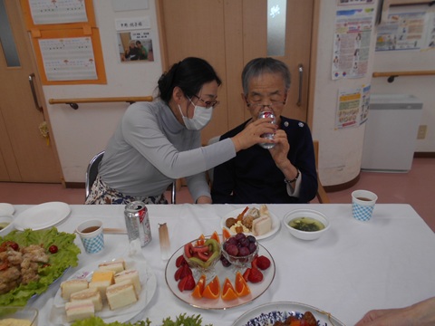 グループホームかがやき ♪ 母の日パーティ③ ♪ 2025-05-17 2025-06-01 3Fフロアーの母の日の紹介です🌸 3F、フロアーは、ご家族様、3名様来られました🌸 食事を摂られ、お話をされて過ごされました🌸 ☆ う す い☆彡<(_ _)>