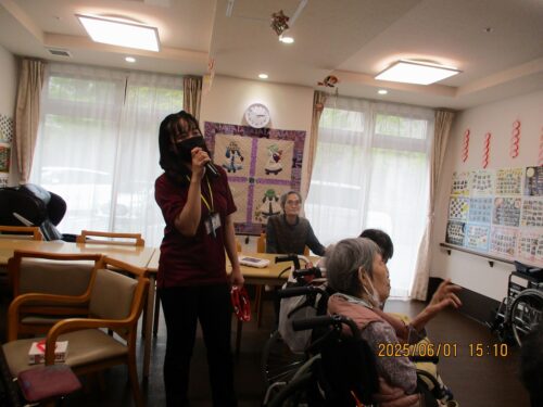 さわやかそう花の里 デュエット🎶 2025-06-01 2025-06-01 こんにちは 6月がスタートしました(`・ω・´)b 日曜日でしたのでカラオケの日🎤 今日は職員と一緒に歌ったりデュエットをしたり♪ 取っても盛り上がりました😉 担当:白鳥