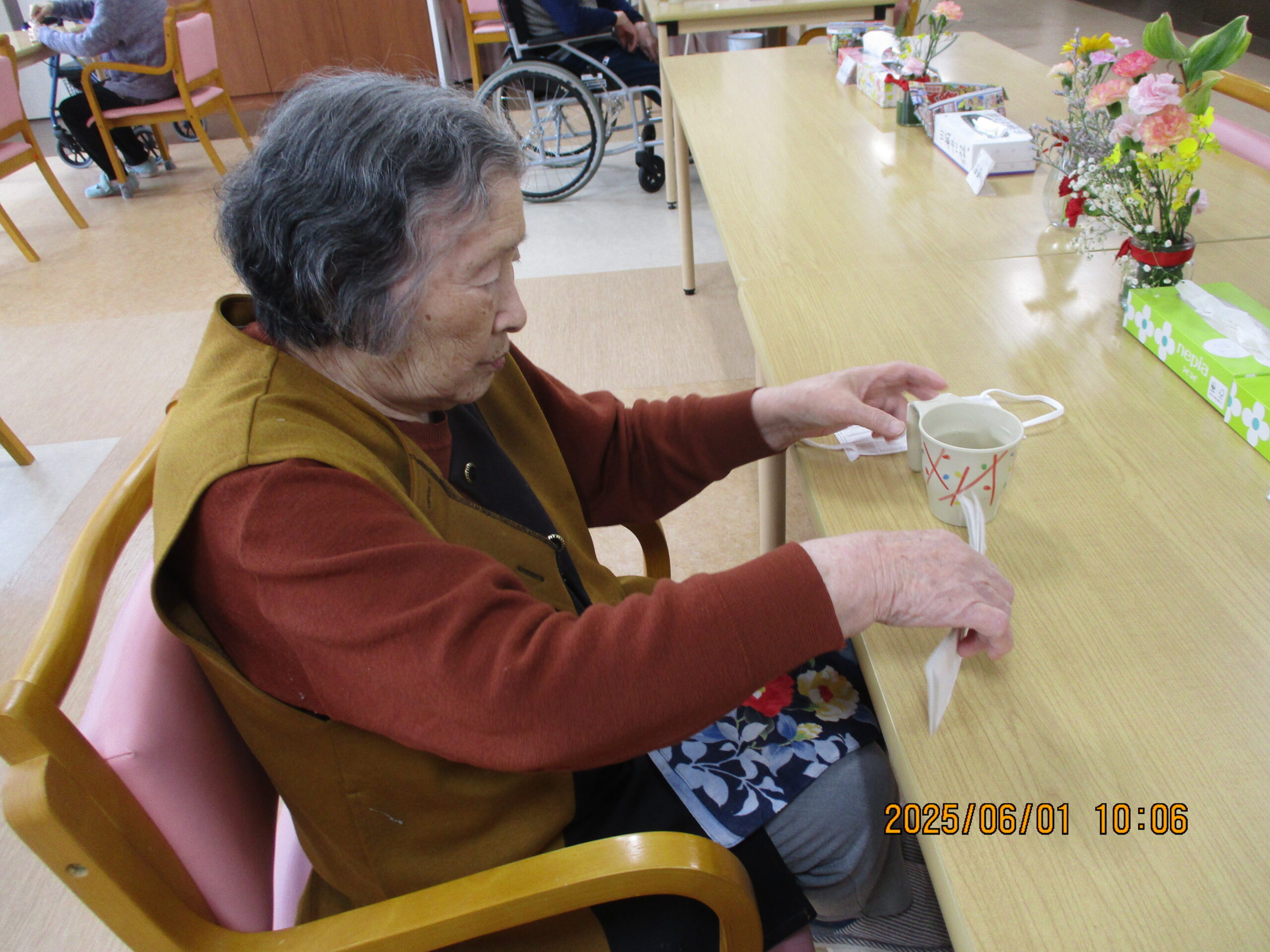 娘様が面会に来られて楽しそうにお話をされている方や