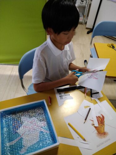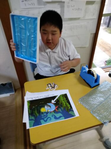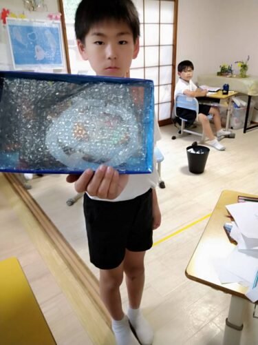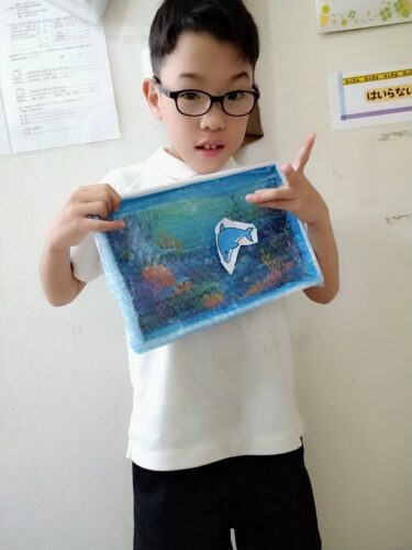 こんにちは。6月9日は箱を使った水族館を作りました。