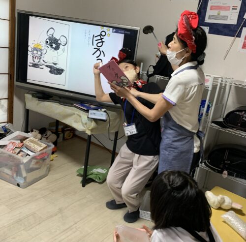 最後は、職員2人で寸劇もどきを取り入れながら岡山弁の物語を読みました!