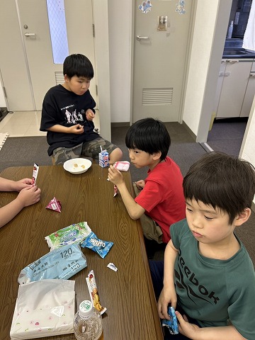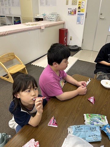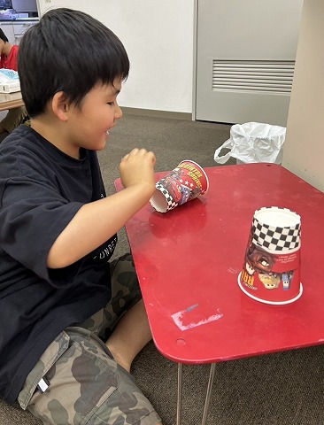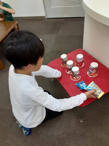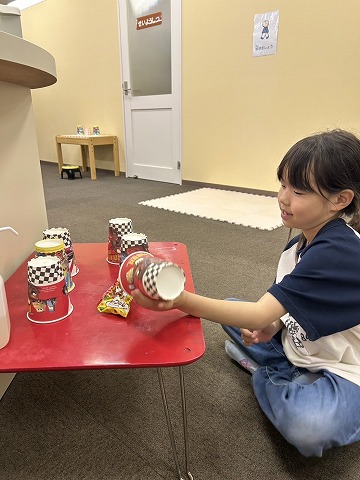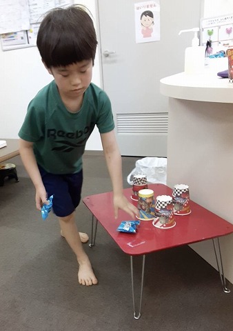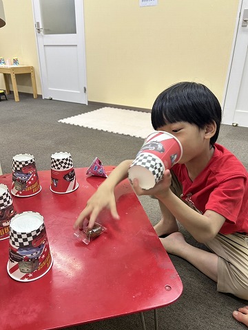 紙コップを3回開けて当たったお菓子が今日のおやつです✨