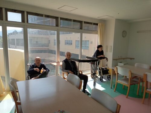本日はフロアを歩いていると入居者様達がひなたぼっこをしていましたのでご紹介したいと思います(^^♪