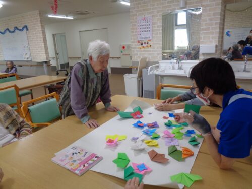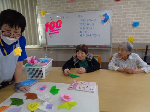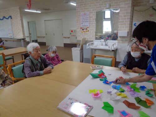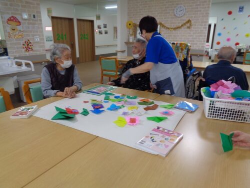 本日は折り紙レクリエーションでアジサイを作っていただきました🏵️