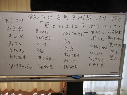 さわやか室蘭弐番館 3階 3日活力朝礼♪ 2025-06-04 2025-06-03 皆様こんにちは♪ 昨日の様子をお届けします ぶれてしまいました😢 9時からラジオ体操です 続いて頭の体操 夏といえば?でお答え頂きました🌻 笑い声溢れる一日になります様に☆