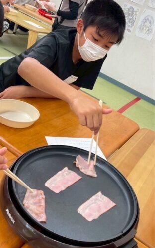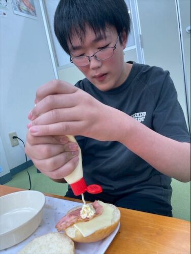 おやつレクでベーコン🥓を使ったバーガー🍔を作りました!