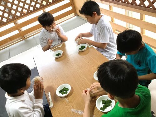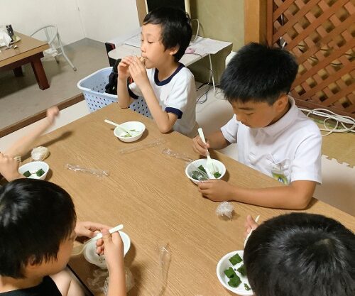 「すごく抹茶の味がする!」「口の中が抹茶になった!」と話す子どもたち。