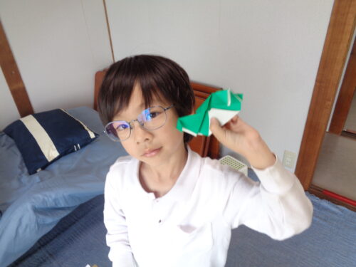 折り紙でカエルや長靴などを作っています🐸