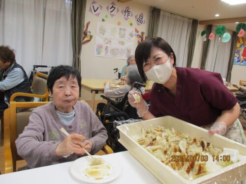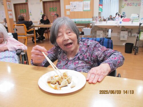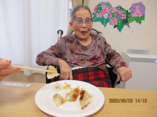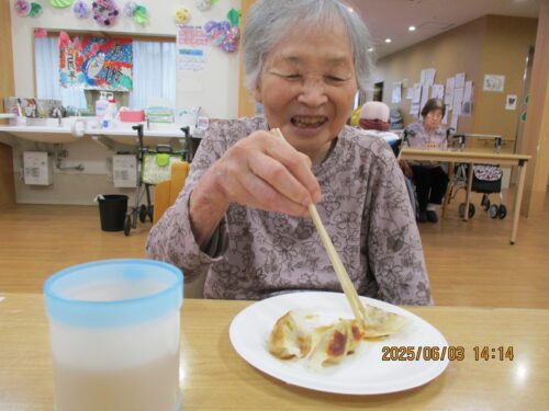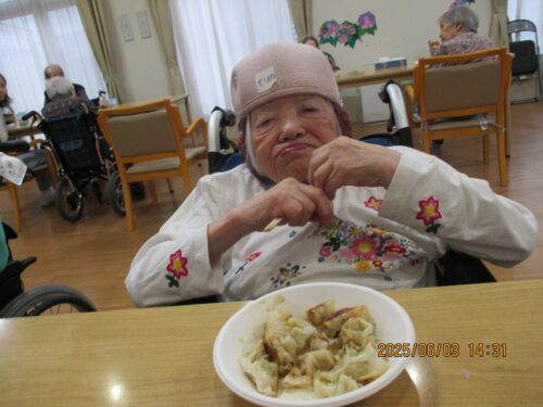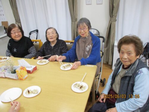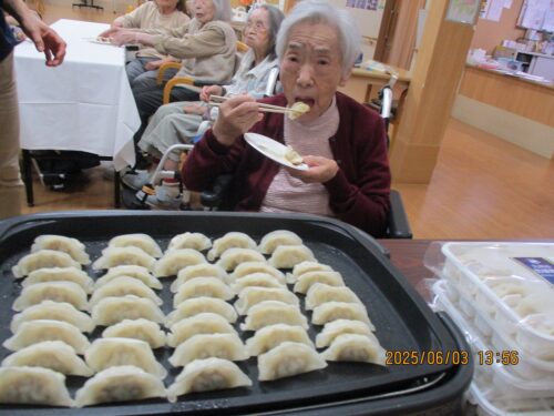 みんなで食べるぎょうざは美味しいわ・・・とお話ししながら
