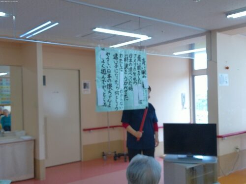 前に歌詞を貼り、歌詞の所々隠して歌詞を思い出す脳トレなども行っています。