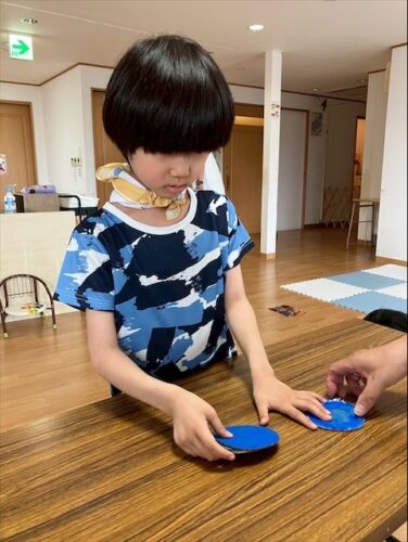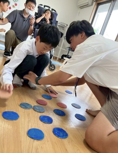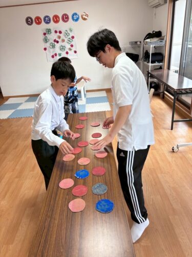 ゲームとして対戦が難しい児童も「この丸をひっくり返すよ」の声で
