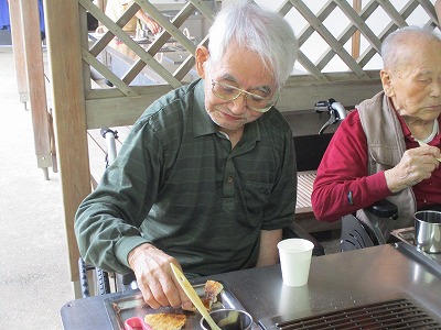 そう花の里では毎年恒例のレクリエーションとしてお煎餅焼き体験をしております
