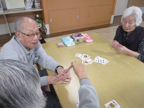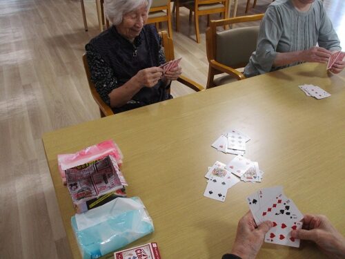 食堂でトランプを楽しまれていました