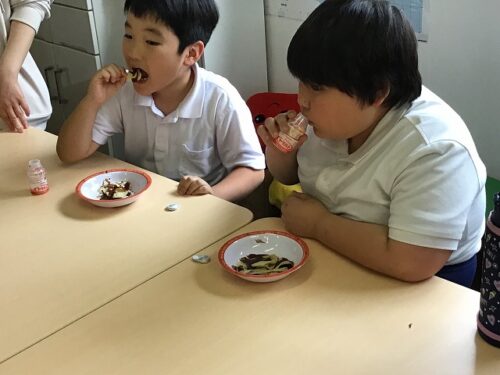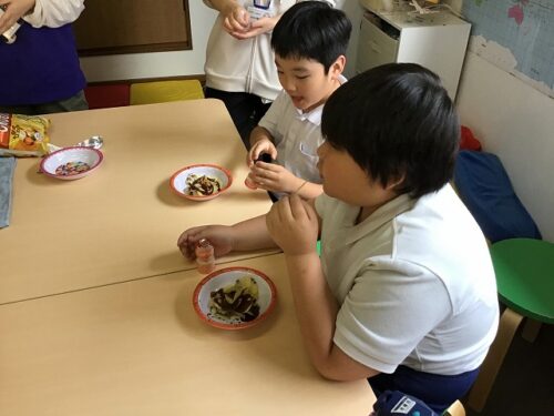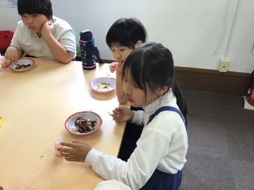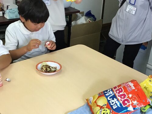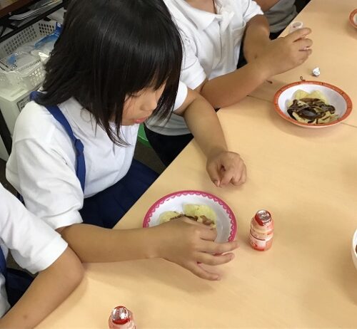 ポテトチップスに溶かしたチョコレートをかけていきます🍫