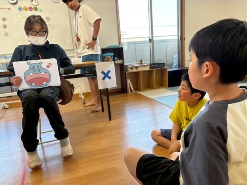 みんな何が始まるのかなと座って興味を持って見てくれていました。