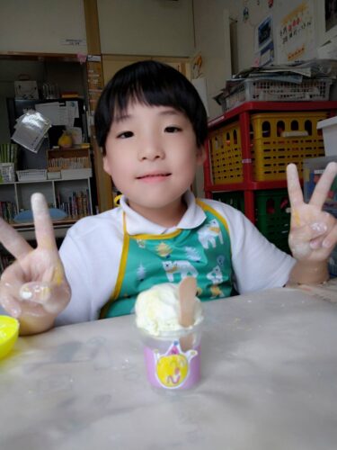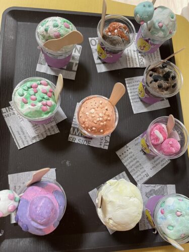 こんにちは。6月25日は粘土を使ったアイスクリームを作りました。