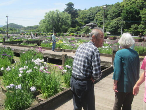 職員と一緒に菖蒲園をぐる~っと見学し、楽しまれていました。