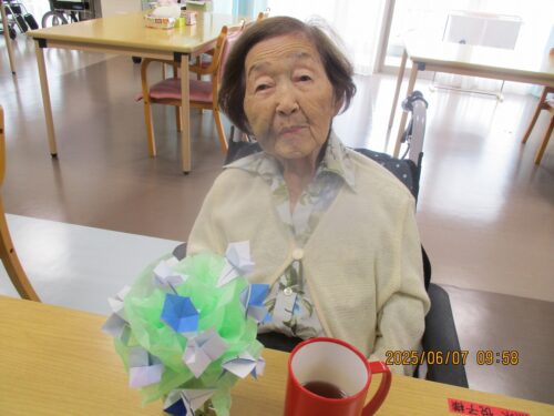 フロアの机の上も折り紙で花を作ったり、お誕生日のお花を飾ったりしております。