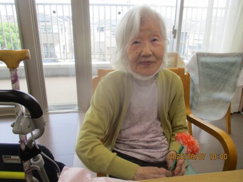 昼のごはん前にフロアに来られ塗り絵をしたり、近くのご入居者様と談笑を楽しまれております。