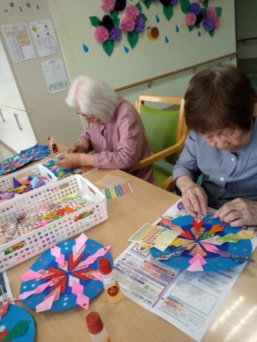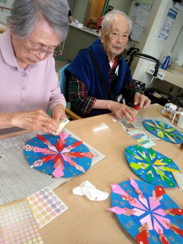 さわやか海響館 レクリエーション作品作り➁ 2025-06-07 2025-06-07 こんにちは。さわやか海響館です。 本日は4階の入居者様と壁飾りの作成を行いました(^^)/ 素晴らしい作品が出来上がりました♪ 次回は3階のレクリエーションの様子をお伝えします。