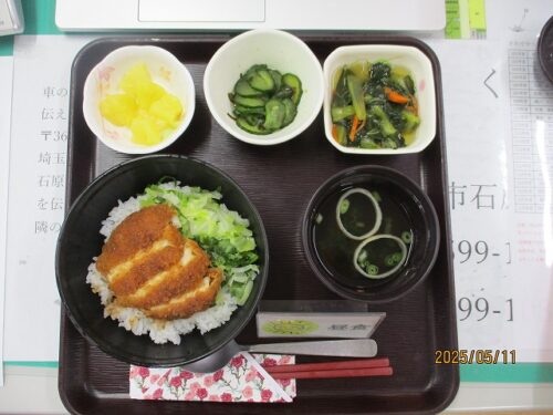 ご飯・豚肉と青梗菜の味噌炒め🐷