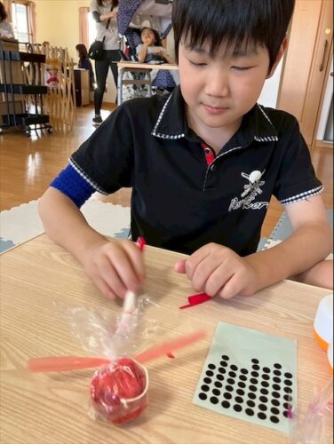 自分たちで作った作品を嬉しそうに見ている児童達を見て職員の頬も緩みました😊