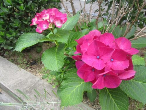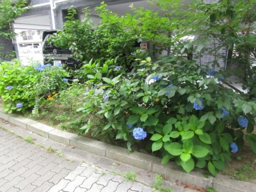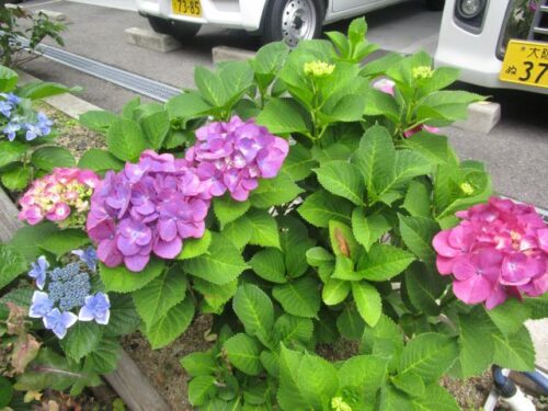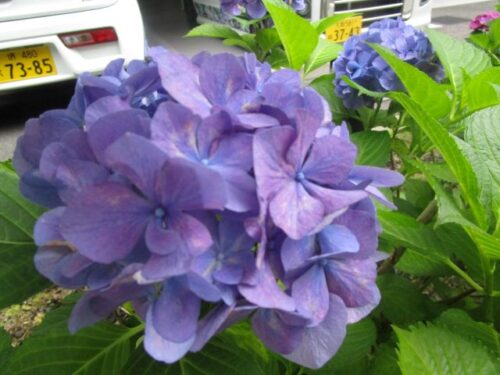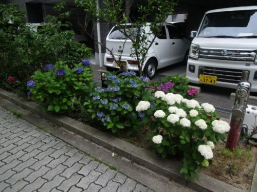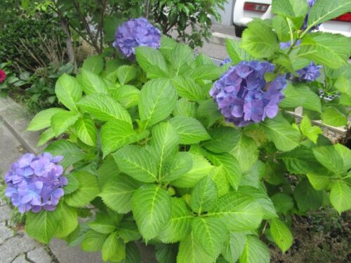 玄関の前から駐車場の前いっぱいに紫陽花が咲いてます😊