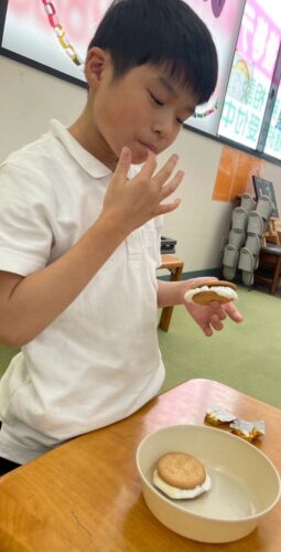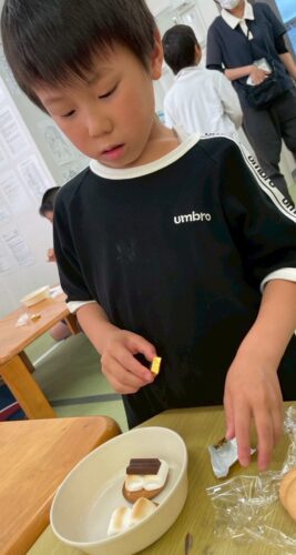 マシュマロがむに〜っと伸びて、みんなおいしそうに食べていました。