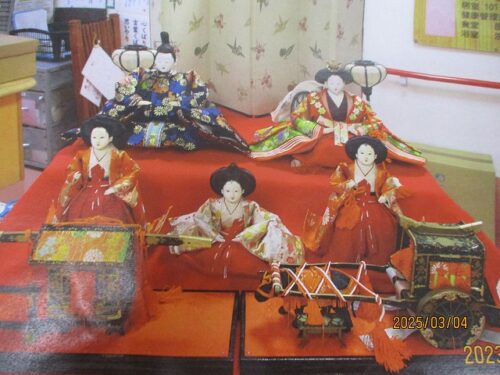 事務所横に3段の雛飾りを作成し、たくさんの入居者様にも喜んで頂けました。