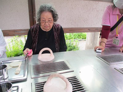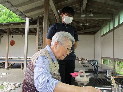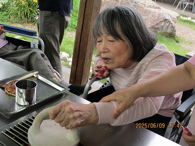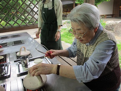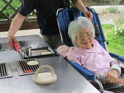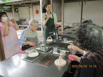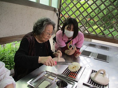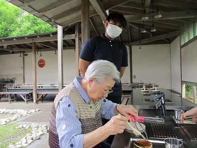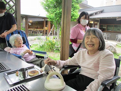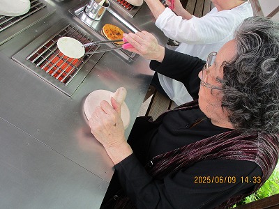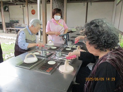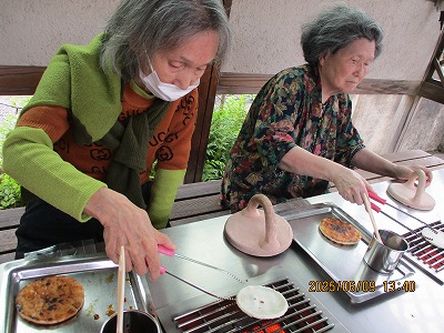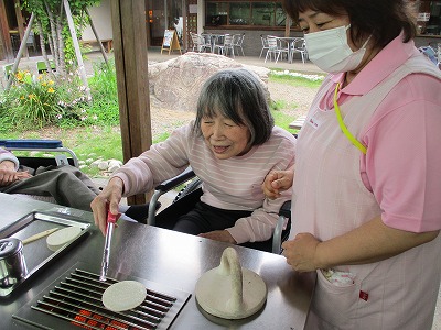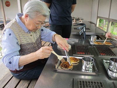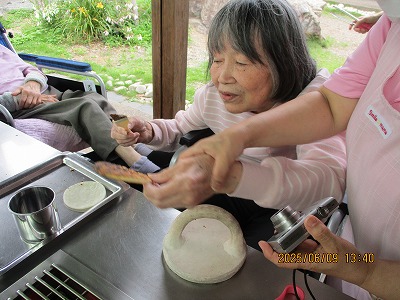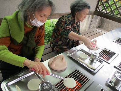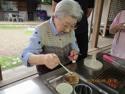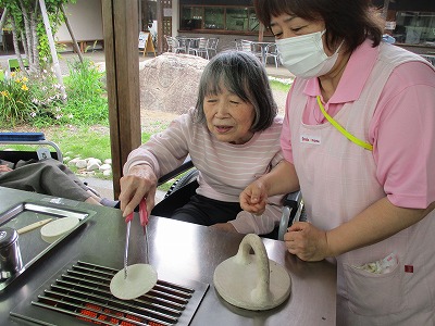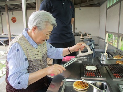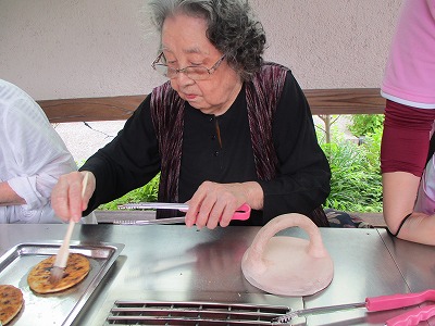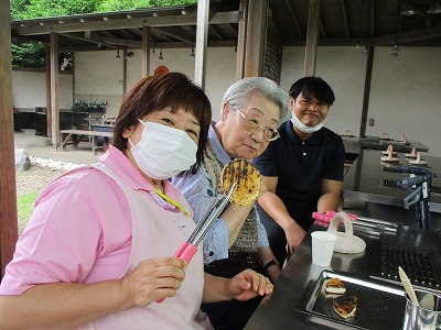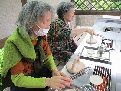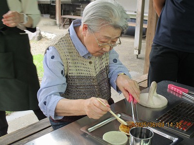 午後の女性陣は慎重に焼き進めて美味しそうな焼き色の香ばしい~お煎餅が完成✨