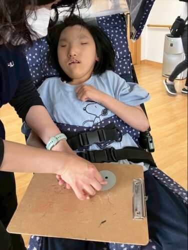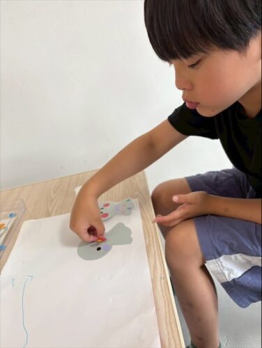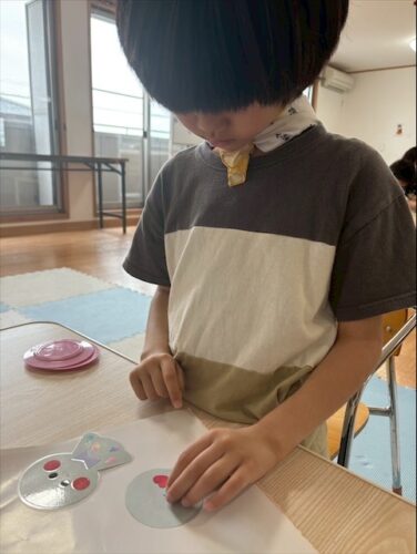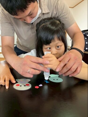 見本を見ながらみんなお顔のパーツを貼ってくれています。