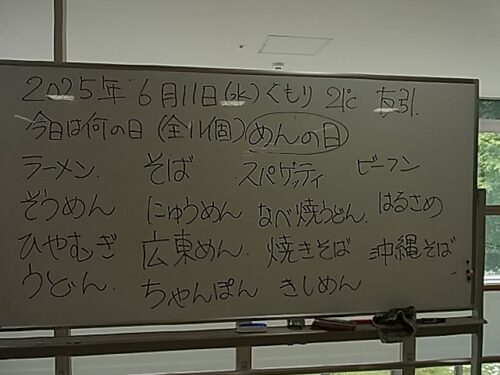さわやか室蘭弐番館 2階 11日活力朝礼♪ 2025-06-12 2025-06-11 皆様こんにちは♪ 昨日の様子をお届けします 元気いっぱいラジオ体操です 続いて頭の体操 麺の日にちなみ麺の種類お答え頂きました 室蘭弐番館では週1回(昼食) 麺類を提供させて頂いています 笑い声溢れる一日になります様に☆