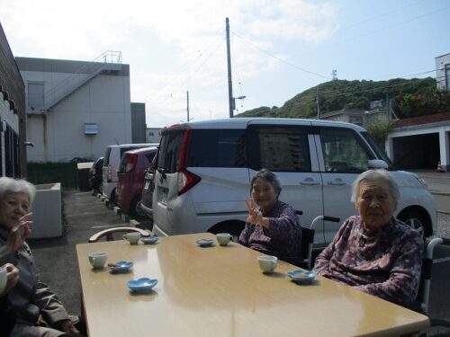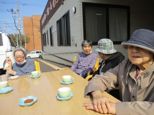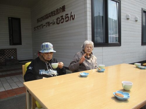さわやかグループホーム むろらん 特別なおやつの時間 2025-06-12 2025-06-11 暖かな日が続いていますね! この日は暖かかったのでお外で三時のおやつを食べて頂きました! いつものおやつよりもっと美味しく感じますね!