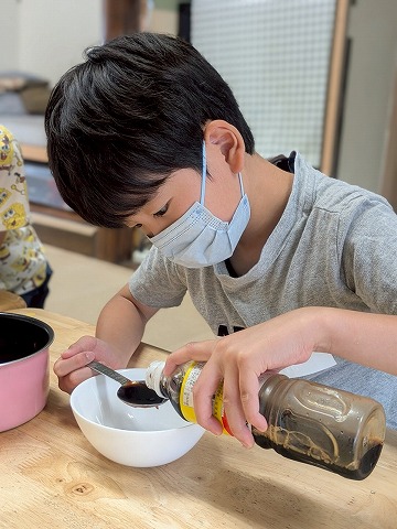 エビチリの調味料を計ります。ケチャップを使いました🙂