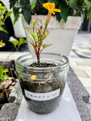 去年、さわやか倶楽部のフラワーコンテストの際に植えたマリーゴールドの種を収穫して、秋に種まきしたお花が遂に咲きました✨