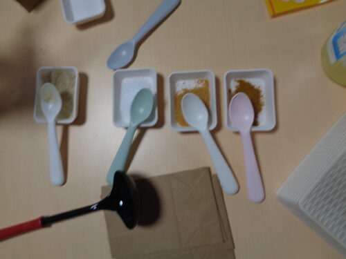 味もカレー、塩、ガーリック、コンソメを準備しました😄