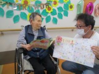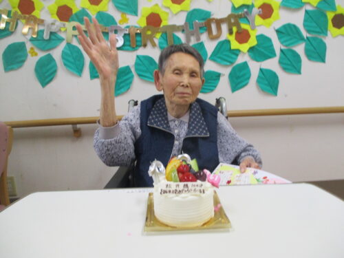 私たち職員からはケーキを渡すとすごく喜んで頂きました。いつまでも元気でいて下さいね♥